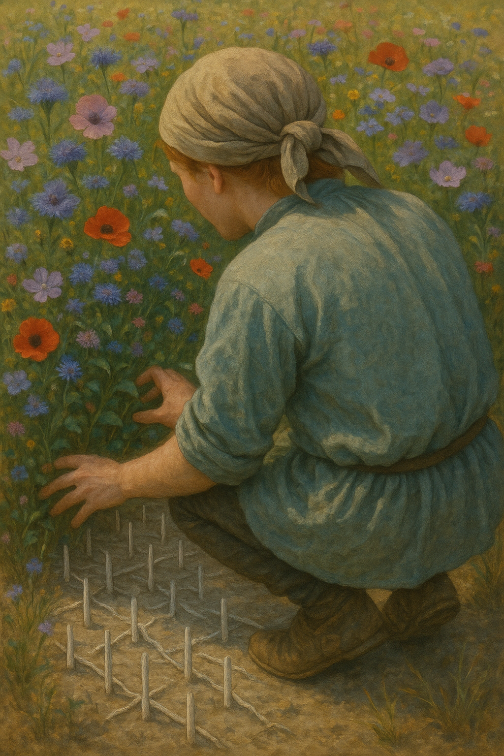 From the gate it looked fine. A sprawl of late-sown flowers—corncockle, phacelia, poppies curling at the edges. Lowen leaned on the post, squinting. Didn’t he say these weren’t in the seed list?