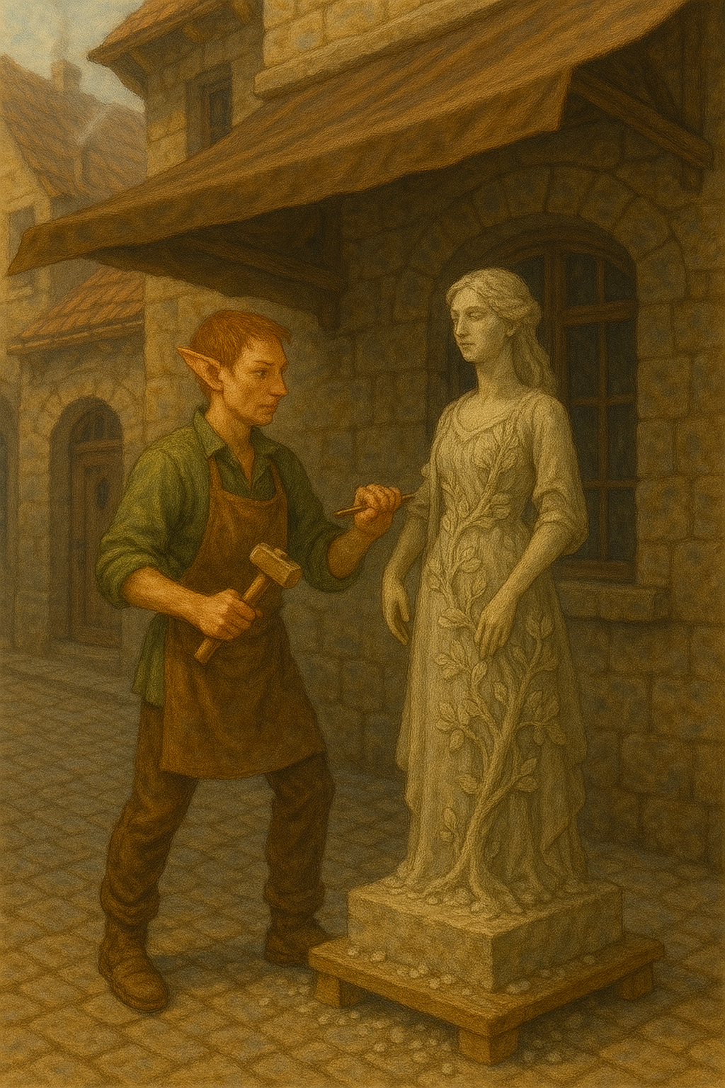Gilden Reach had the smell of heated brass and morning bread. The stone under Elowen‘s boots was warm already — not from sun but from use, paths worn smooth by handcarts and apprentices in thick aprons. It wasn’t bustling exactly, but it breathed. A quiet, working rhythm. She breathed with it, or tried to. The…