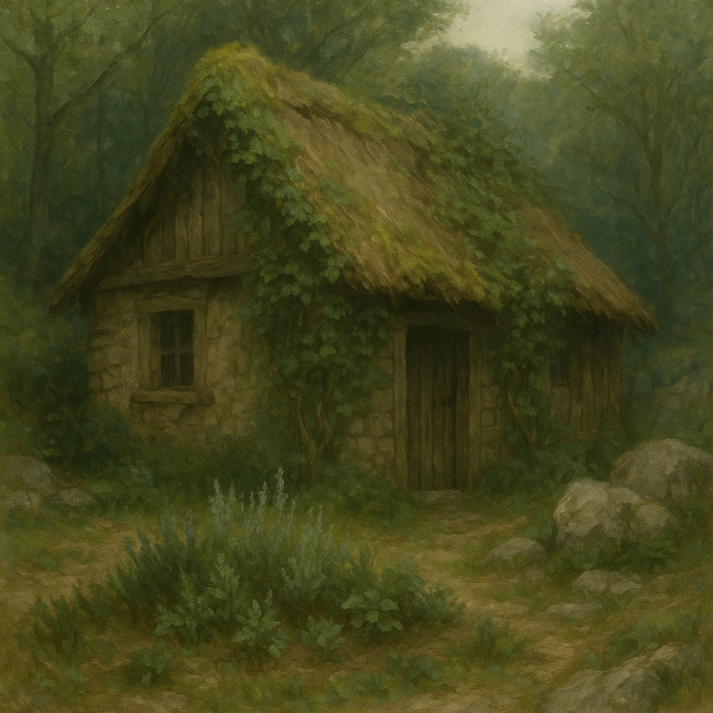 The cottage Lowen called home was humble, tucked away from well-trodden roads, nestled in a grove where ivy embraced walls of weathered wood. Inside, shelves brimmed with glass jars containing dried herbs and berries, meticulously labelled. Silver tools, polished but marked by years of use, rested beside delicate carvings waiting to be finished. Some of her father’s objects – herb preserving equipment, a simple wooden box, wrapped in oil cloth, a bundle of hand-drawn field notes and sketches — pressed between scraps of bark and vellum, tied with faded cord. Some are her own observations; others, written in Old Foss’s spare, looping hand, noting plant behaviour, moon phases, and quiet impressions of the land.