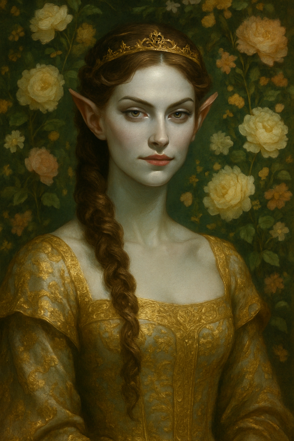 Her elegance is as formidable as her tongue; she knows how to command a room, how to read its weaknesses, and how to twist a phrase into a blade. While some find her dazzling, others find her exhausting — and few would dare cross her. She views her cousin Gwynviène with open disdain, seeing her as frivolous, soft-hearted, and unworthy of the family name. To Aestrelle, legacy is not to be questioned or reshaped — it is to be upheld, perfected, and crowned in her image.