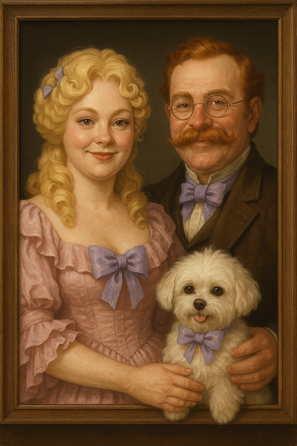 - Her small white dog, Toujours, who has a ribbon for every occasion