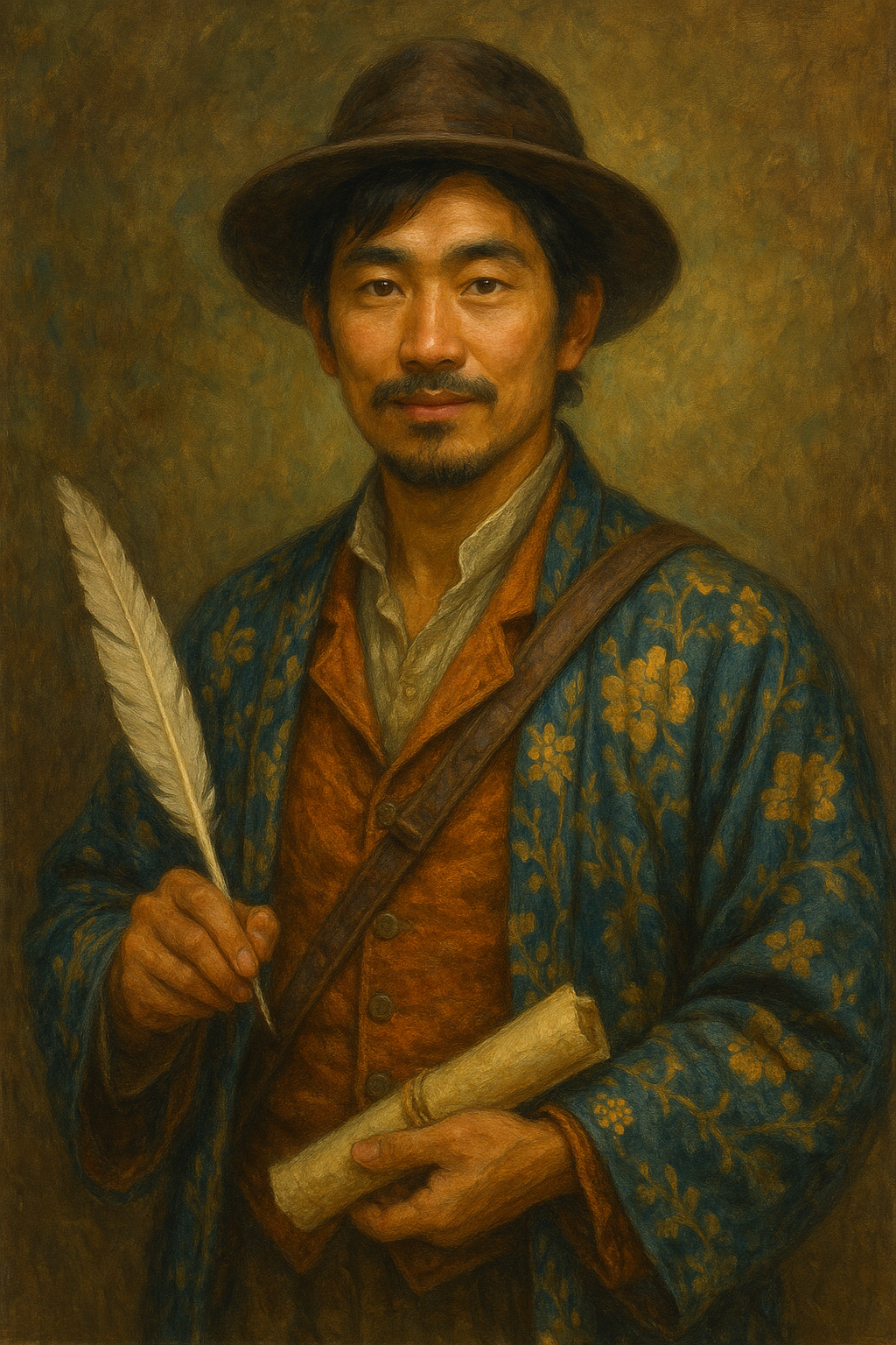 He is best recognised by his half-kimono, half-courier aesthetic, a well-worn satchel stuffed with ink-stained notes, and a disarming smile that has opened more doors (and pub tabs) than any official credentials ever could.