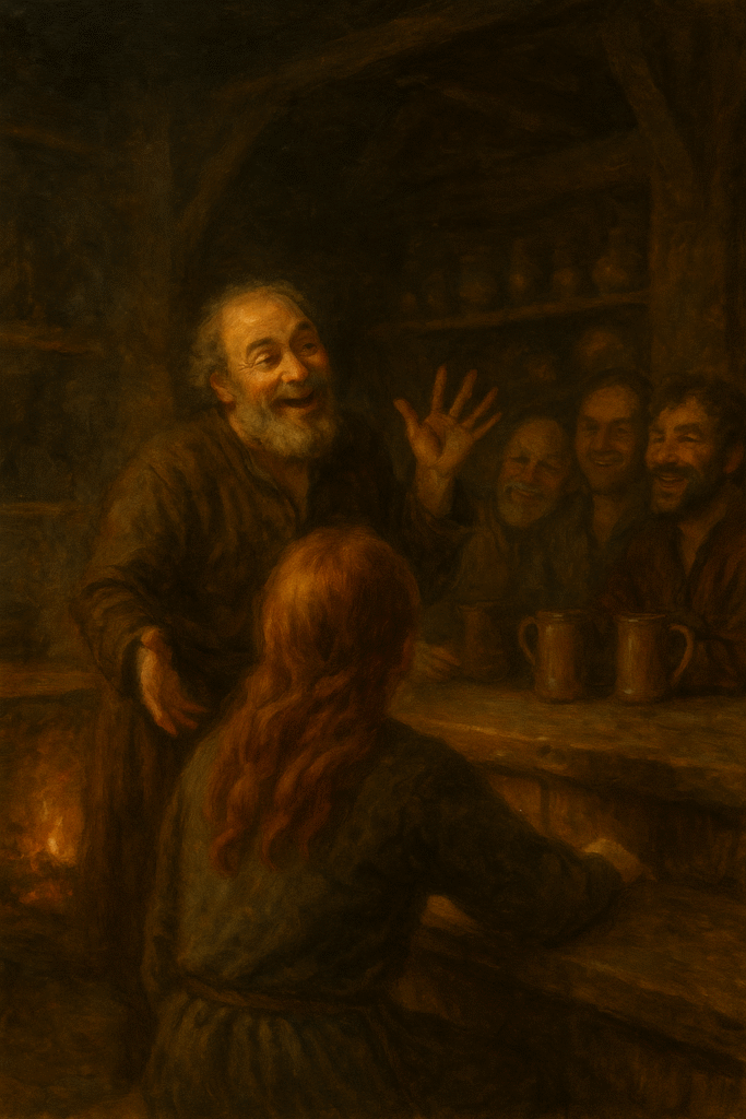 The tavern’s talk, the forge’s glow, the quarrels and songs that bind neighbours together. Lives lived close to the land, and the tales that spring from them.
